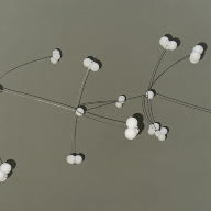 The work imitates the structure of a snowberry bush — clustered and restrained — while remaining a suspended, balanced object.